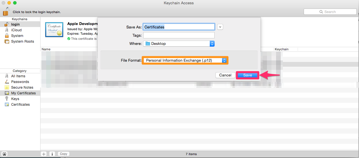 Export your Apple Push certificate from Keychain Access